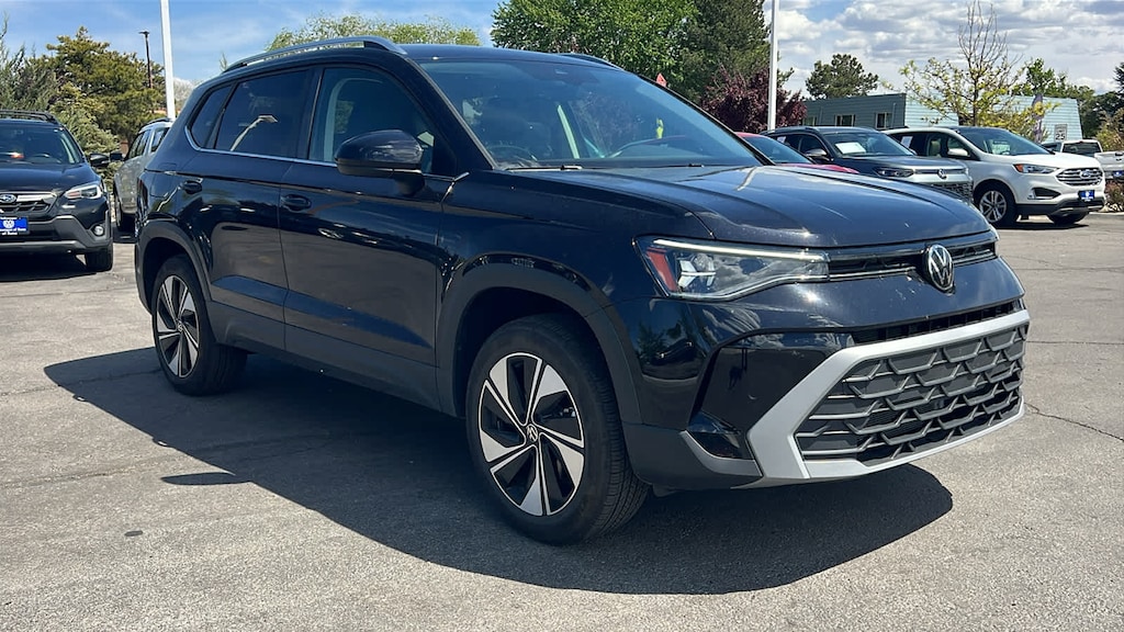 CARFAX One-Owner. Priced below KBB Fair Purchase Price! Deep Black 2025 Volkswagen Taos 1.5T SE AWD 8-Speed Automatic with Tiptronic 1.5L I4 Turbocharged DOHC 16V LEV3-SULEV30 174hp